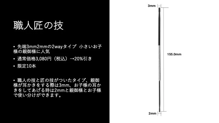 5.医療器具屋さんが作った耳かき 職人匠の技(先端3mm &2mmの2wayタイプ)