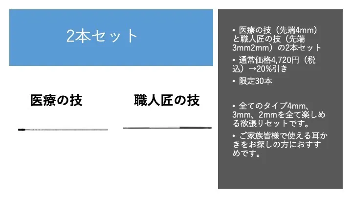 6.医療器具屋さんが作った耳かき 2本セット(先端4mm+先端3mm&2mmの2wayタイプ)