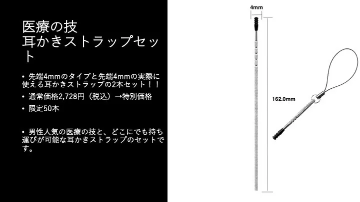 7.医療器具屋さんが作った耳かき 医療の技(先端4mm)+耳かきストラップセット