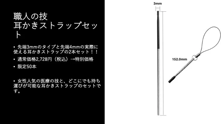 8.医療器具屋さんが作った耳かき 職人の技(先端3mm)+耳かきストラップセット