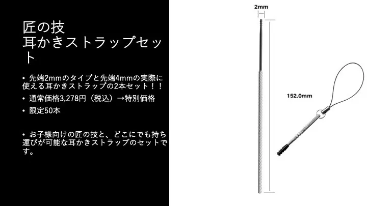 9.医療器具屋さんが作った耳かき 匠の技(先端2mm)+耳かきストラップセット