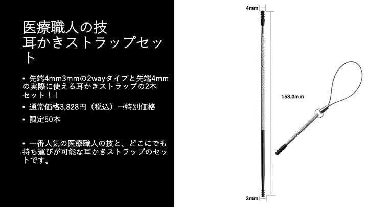 10.医療器具屋さんが作った耳かき 医療職人の技(先端4mm&3mmの2wayタイプ)+耳かきストラップセット