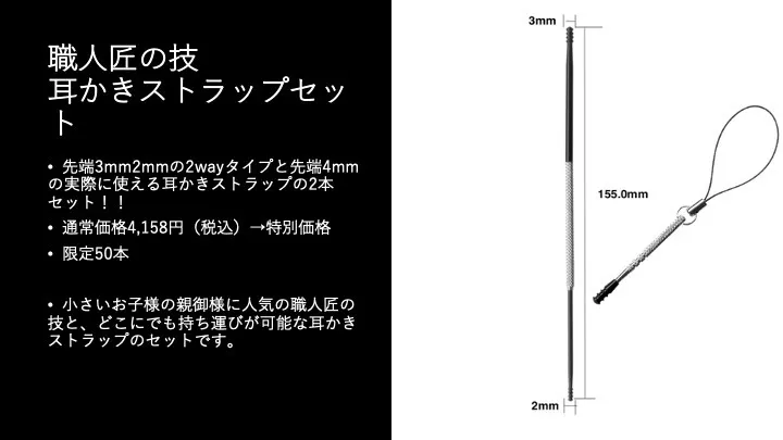 11.医療器具屋さんが作った耳かき 職人匠の技(先端3mm&2mmの2wayタイプ)+耳かきストラップセット
