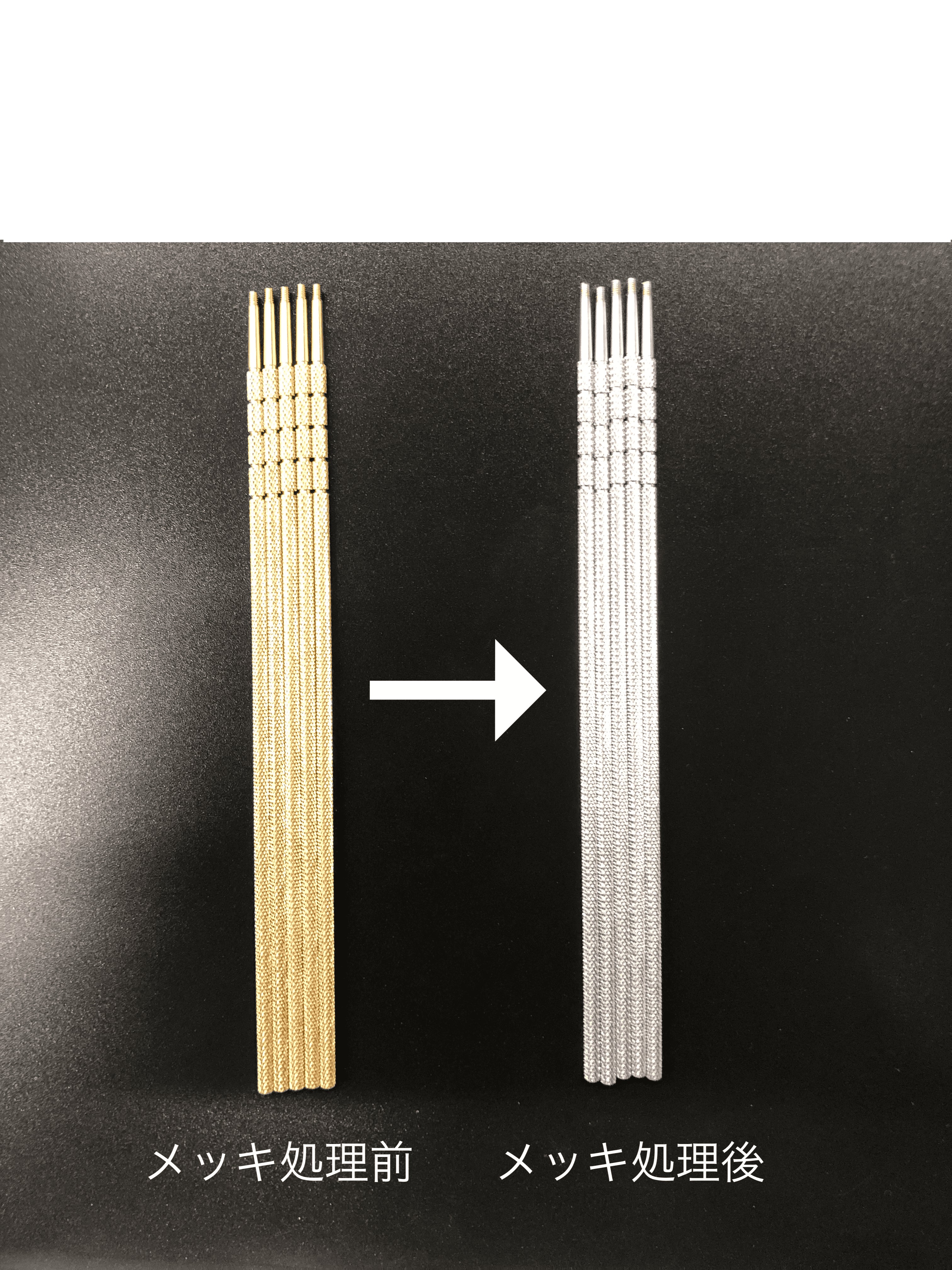 これは医療機器製造でよく使われる技術で、金属にこの加工を施す事で手に持った際に滑りにくくなります。