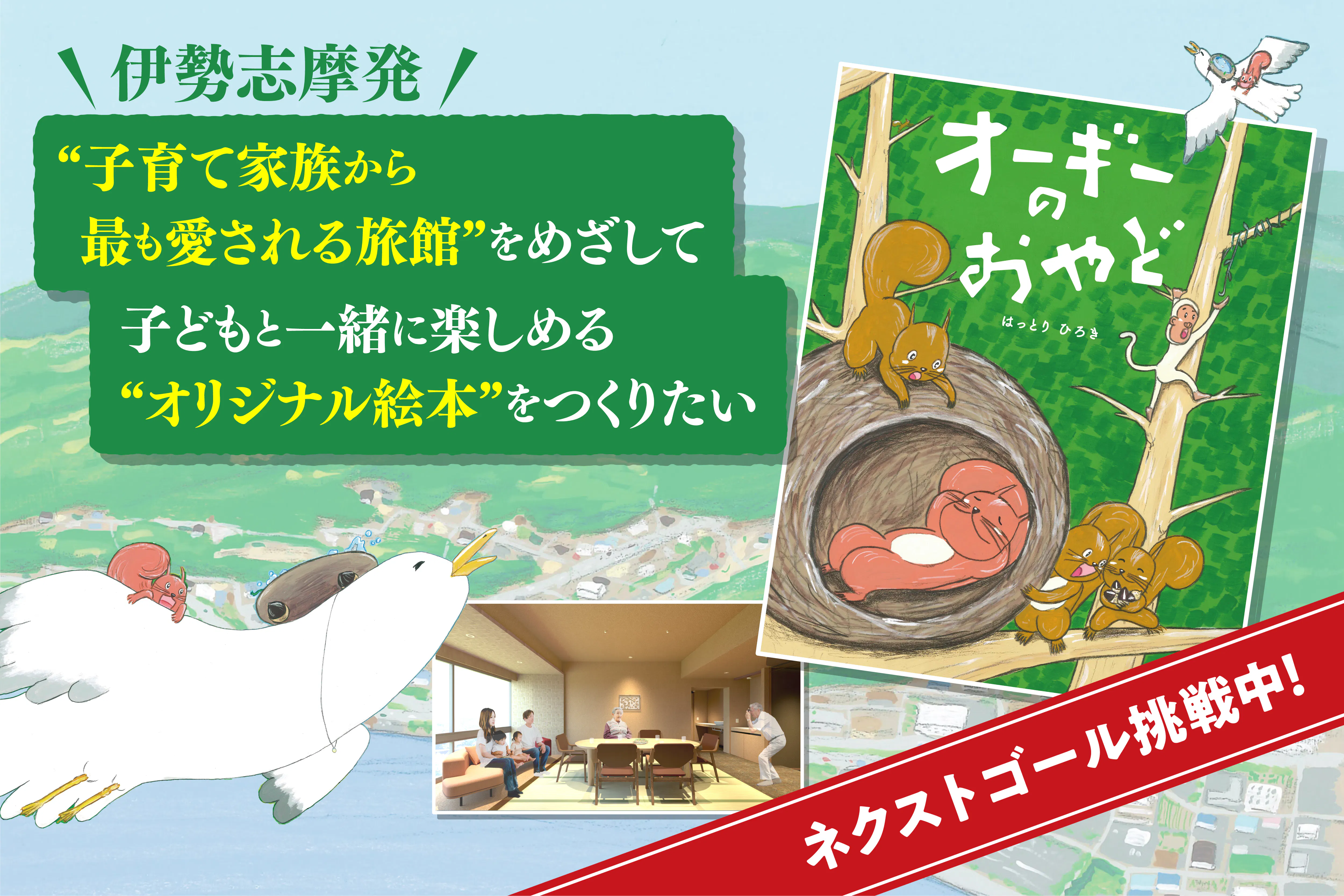 《ネクストゴール150万円を目指し、「オリジナル絵本」を通じて、子育て家族に優しい旅館、自然とともにあるこれからの観光業の挑戦を、多くの方にお届けするために頑張ります!》