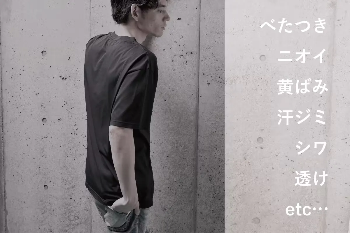 ①汗で肌にべたつく、汗ジミも気になる・・・②ニオイでいやな顔をされる・・・③洗濯が面倒。アイロンがけはもっと面倒・・・④生地が透けて1枚では外に出れない・・・⑤1年で黄ばみが・・・⑥ナチュラルだけどカジュアルすぎないちょうどいいTシャツって意外とみつからない・・・⑦Tシャツが家にあふれてる。毎年いくらお金を使ってるの(泣)・・・
