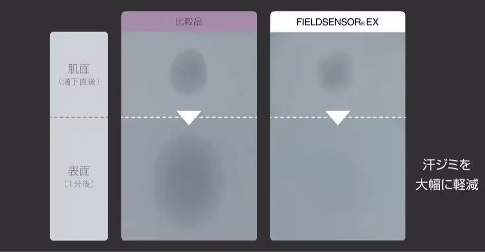 「MOON-TECH®」Tシャツは、東レが開発した”汗をマネジメントする”先端素材「フィールドセンサー®EX 」を使用しています。汗による不快要素をコントロールし、なめらかでさらさらとした快適な着心地で高級スポーツブランドでも使用される、ハイレベルな快適性、利便性、耐久性、美しいテクスチャーをもつ先端素材です。