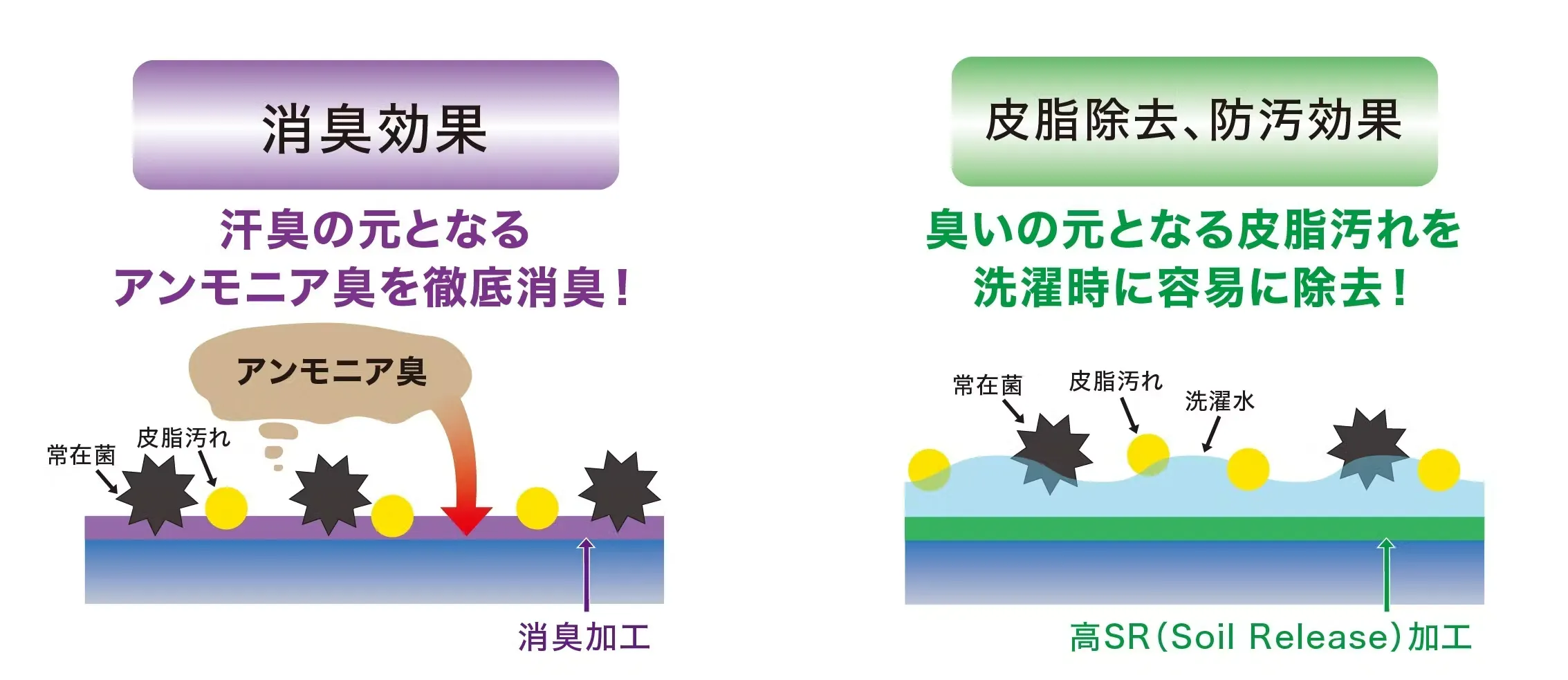 宇宙ステーションは「体育会系の部室のにおい」がするとも言われており、水を使った洗濯などが難しいためニオイ対策が非常に重要です。東レはJAXAと共同で開発を行い、非常に高レベルの消臭技術開発に成功しています。