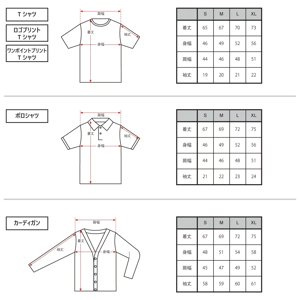 少しフォーマルな場所で着用の多いポロシャツに、Tシャツと合わせることで着用シーンの広がるカーディガンも商品バリエーションとして用意しています。