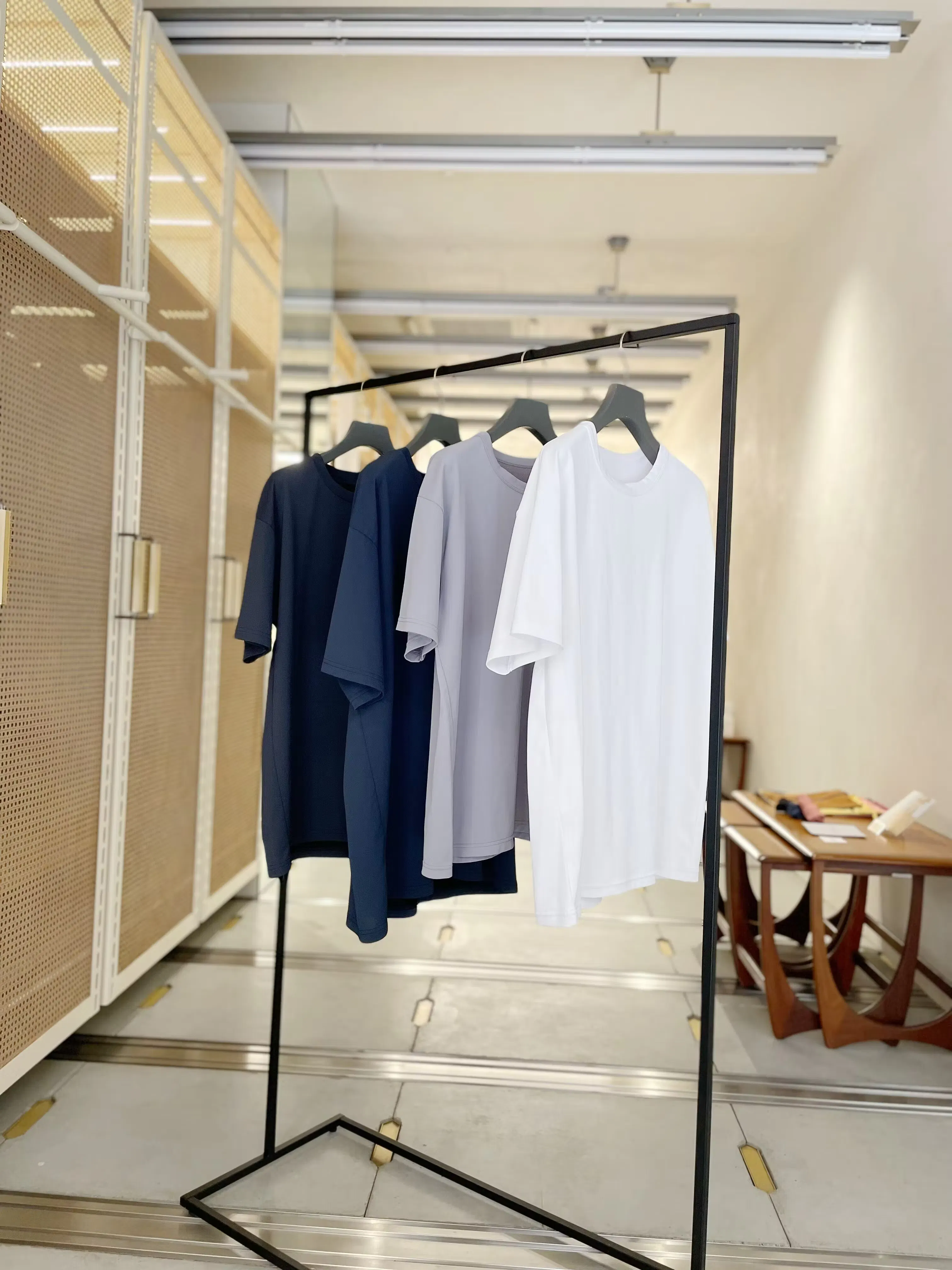 商品現物を見て、触って、サイズを確認できる場所として、東京日本橋にてショールームを設置しております。「MOON-TECH®」Tシャツの展示も行っていますので、ぜひ商品の確認やフィッティングでご活用ください。(新色の杢グレーも、生地スワッチ見本を準備しておりますので、そのナチュラルで美しいカラー、汗ジミを抑制する驚きの機能性をご確認いただければ幸いです。)