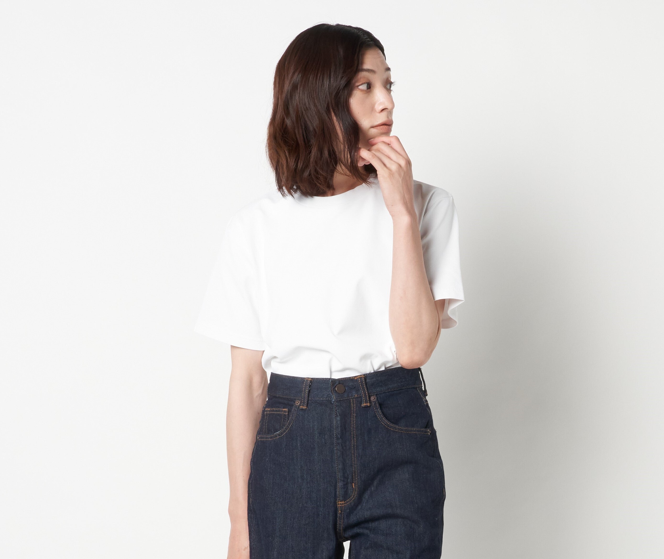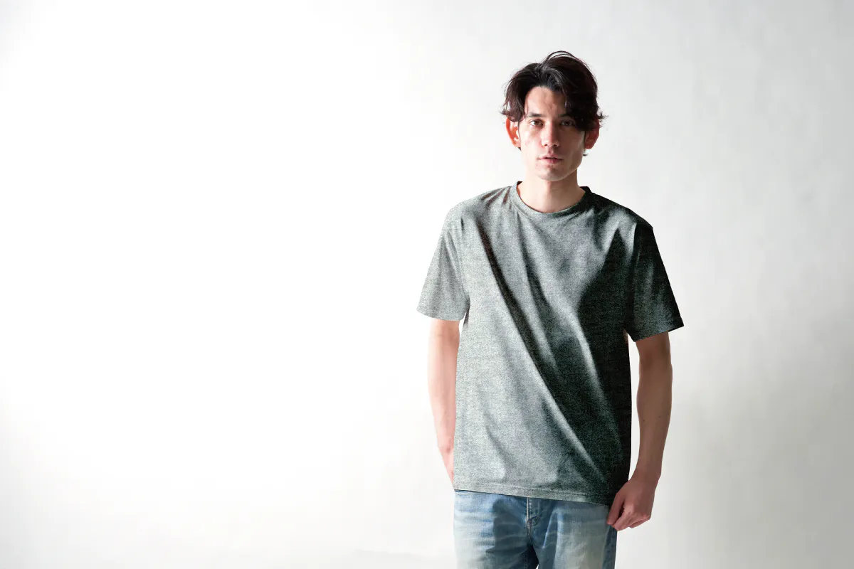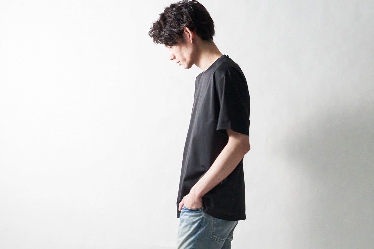 「MOON-TECH®」Tシャツは、マットな表面感でナチュラルなテイストを表現しつつ、カジュアル過ぎない滑らかな美しさを実現しています。