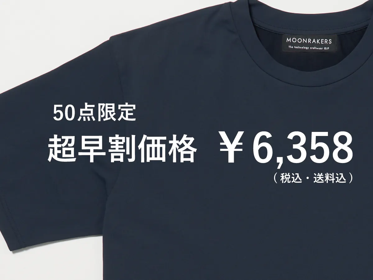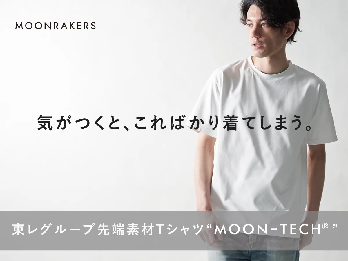 日本が誇る高い技術をもつ企業の最新の先端技術をつぎ込み創造された、快適で便利でロングライフで、「気がつくとこればかり着てしまう」ミライのTシャツ、「MOON-TECH®」。