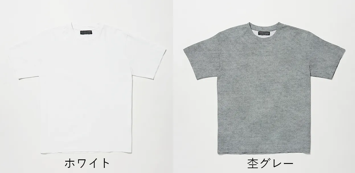 今回、Tシャツのスタンダードカラーの白・黒・グレー・ネイビーに、「MOON-TECH®」をアップグレードするナチュラルで美しい「杢グレー」カラーを追加し、5色展開としています。