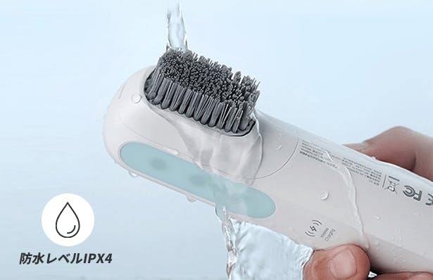 本体は防水レベルIPX4、ブラシヘッド部分は水洗いOKです。