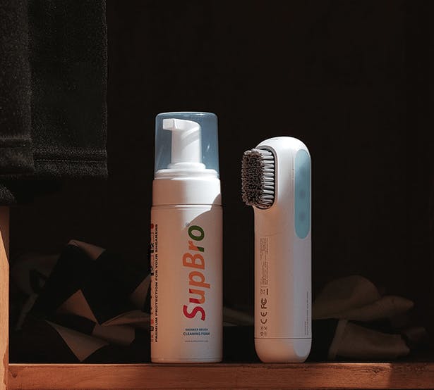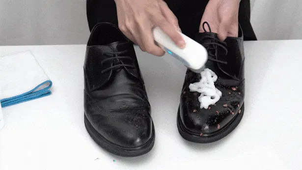 SupBro U1には専用フォーム洗剤とクロスが付属しています。靴が汚れたら、その場ですぐに洗剤をつけて洗浄できます。柔らかなクロスは靴の表面を傷つけることがありません。洗浄後、汚れを軽く拭き取れば完了です。
