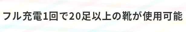 800mAh(2.9Wh)のリチウムイオンバッテリーを内蔵しており、フル充電1回で4時間以上使用ができて、およそ20~25足洗えます。