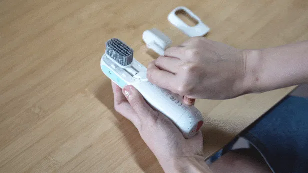 ブラシはカバーを押し開けて、専用ツールでブラシヘッドの底部を押せばすぐ簡単に取り外して交換できます。
