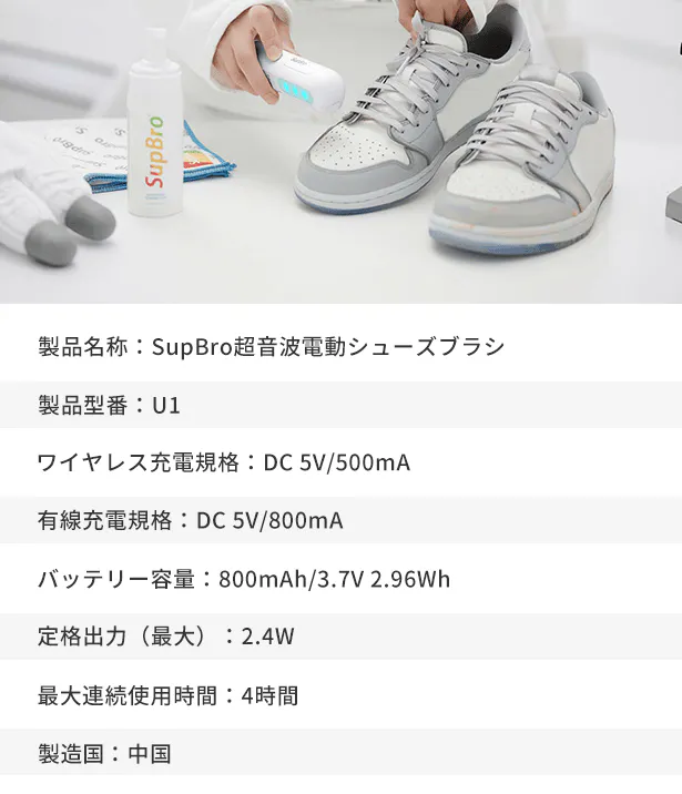 またSupBro U1は超小型ですので、毎日の外出や出張、旅行にも便利に携帯できます。ワイヤレス充電対応で、いつでもどこでもパワフルに靴を洗うことが可能です。