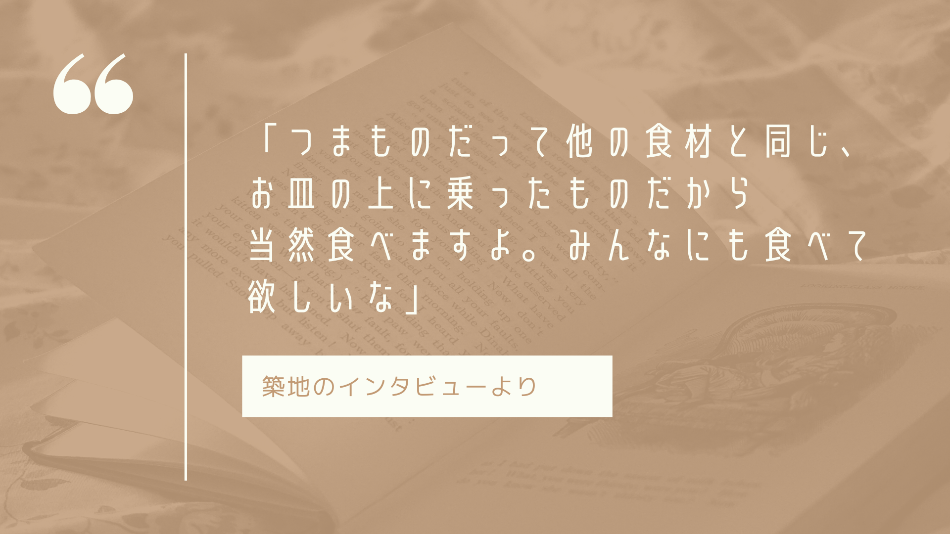 その中で、山本が和食の総本山である京都に住んでいること、魚市場に縁があったことから、和食やお刺身の横に添えられている「つまもの」の存在を思いつきました。