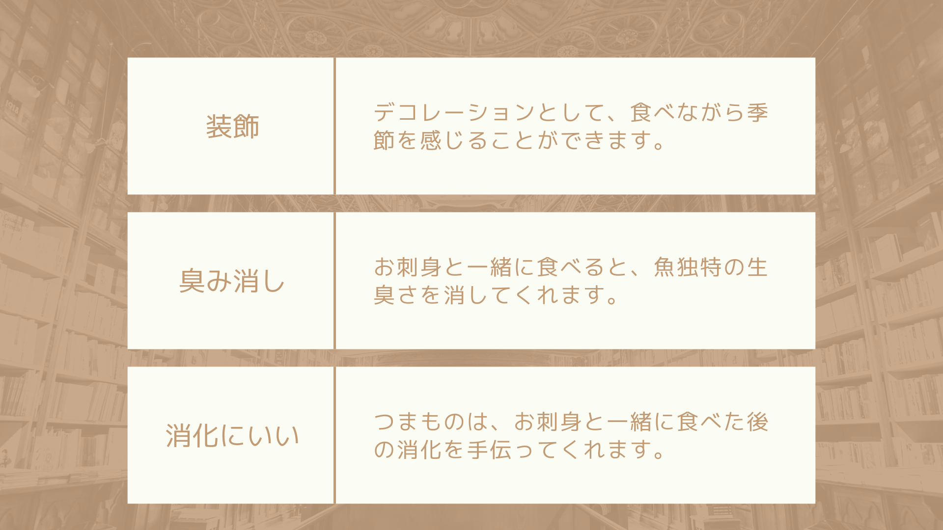 では、皆さんはお刺身についた「つまもの」を食べますか?