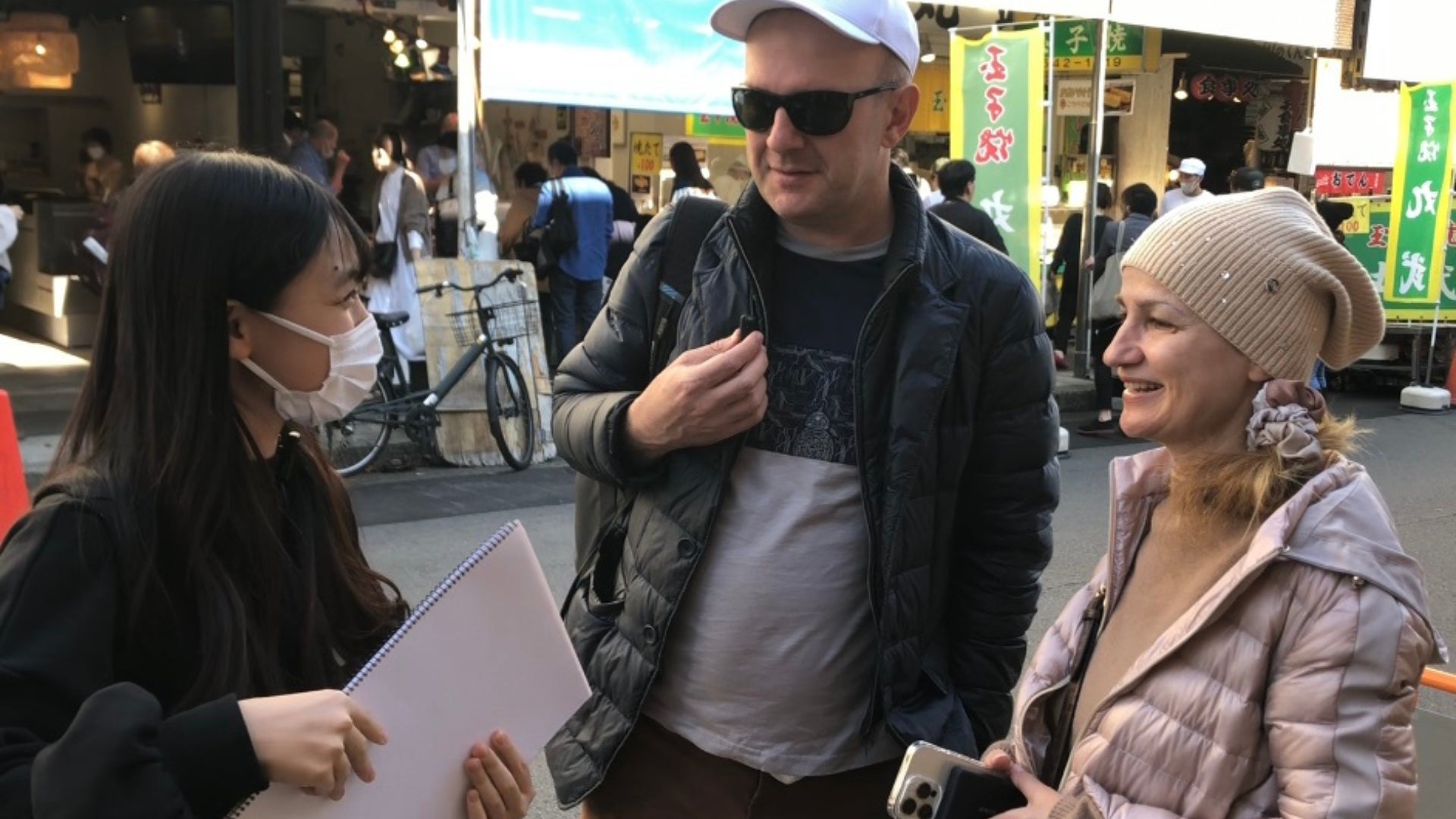 またメンバーの大霜は築地市場で実際に外国人観光客の方々に街頭インタビューをしました!