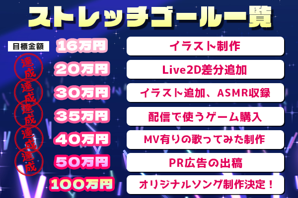 目標以上の金額が集まった際のストレッチゴールを設定させていただいております。