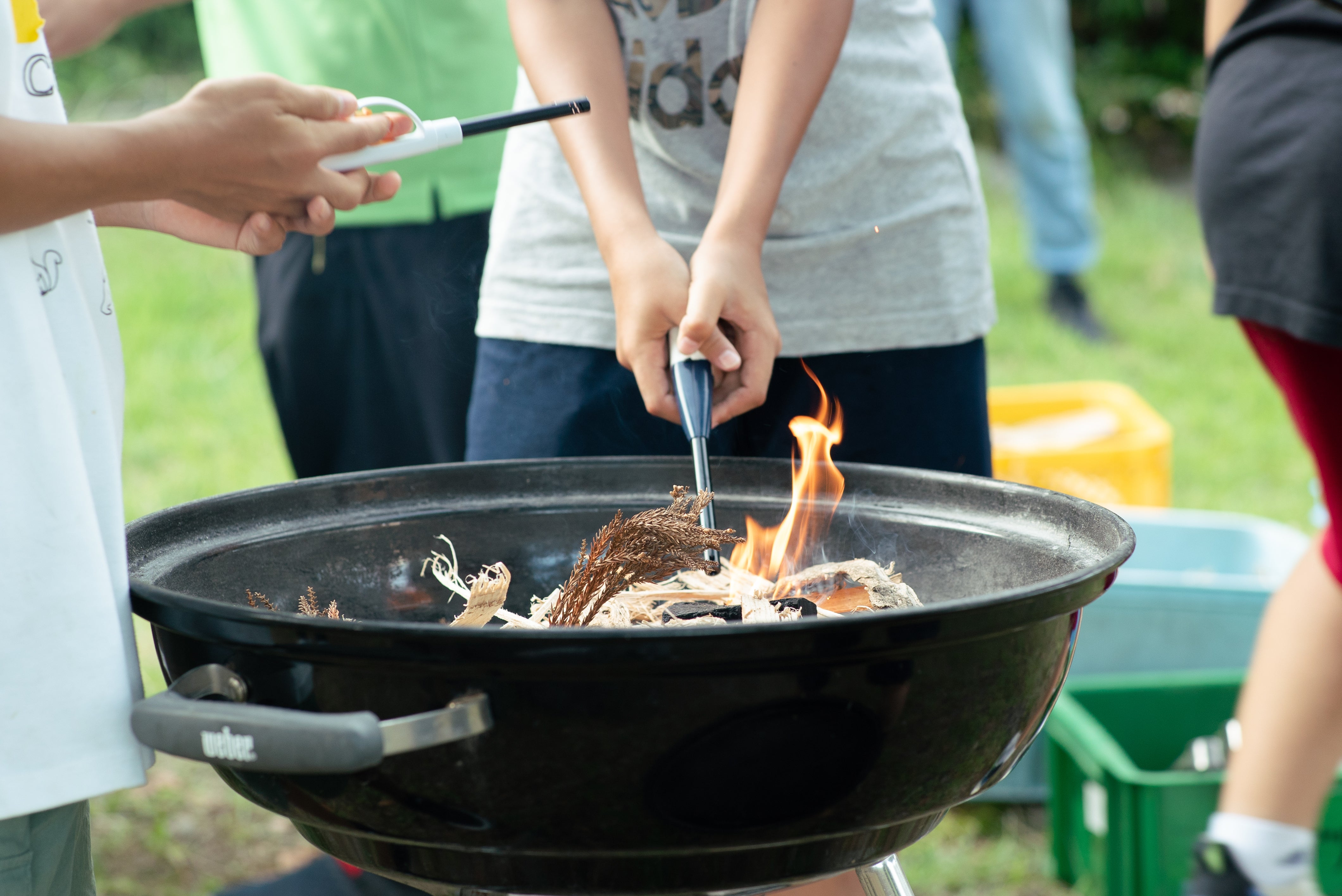 薪を割り、火をおこし、ご飯を炊いて電気やガスが無くても生活できることを知ります。