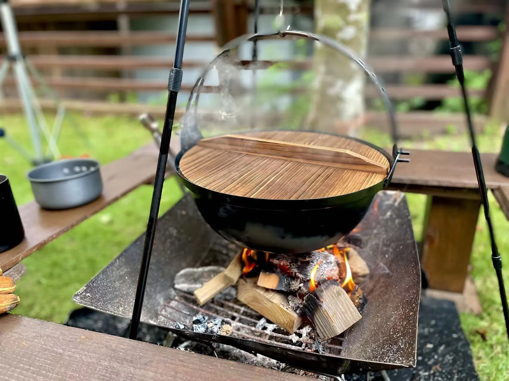 そこで何と言ってもカッコいい囲炉裏鍋を軽量化しアウトドア仕様にしました!!