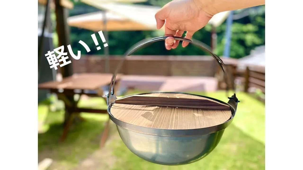 日本伝統の囲炉裏鍋を姿はそのままにキャンプ用に軽量化しました。約1.65㎏!!