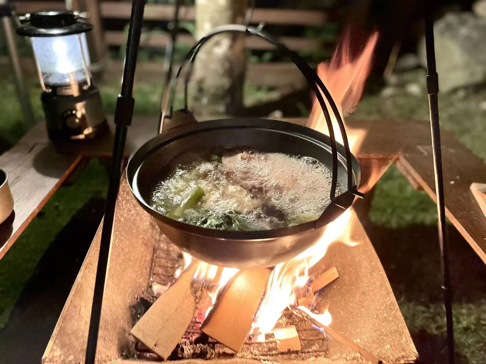いえいえ!!この軽量囲炉裏鍋で!!