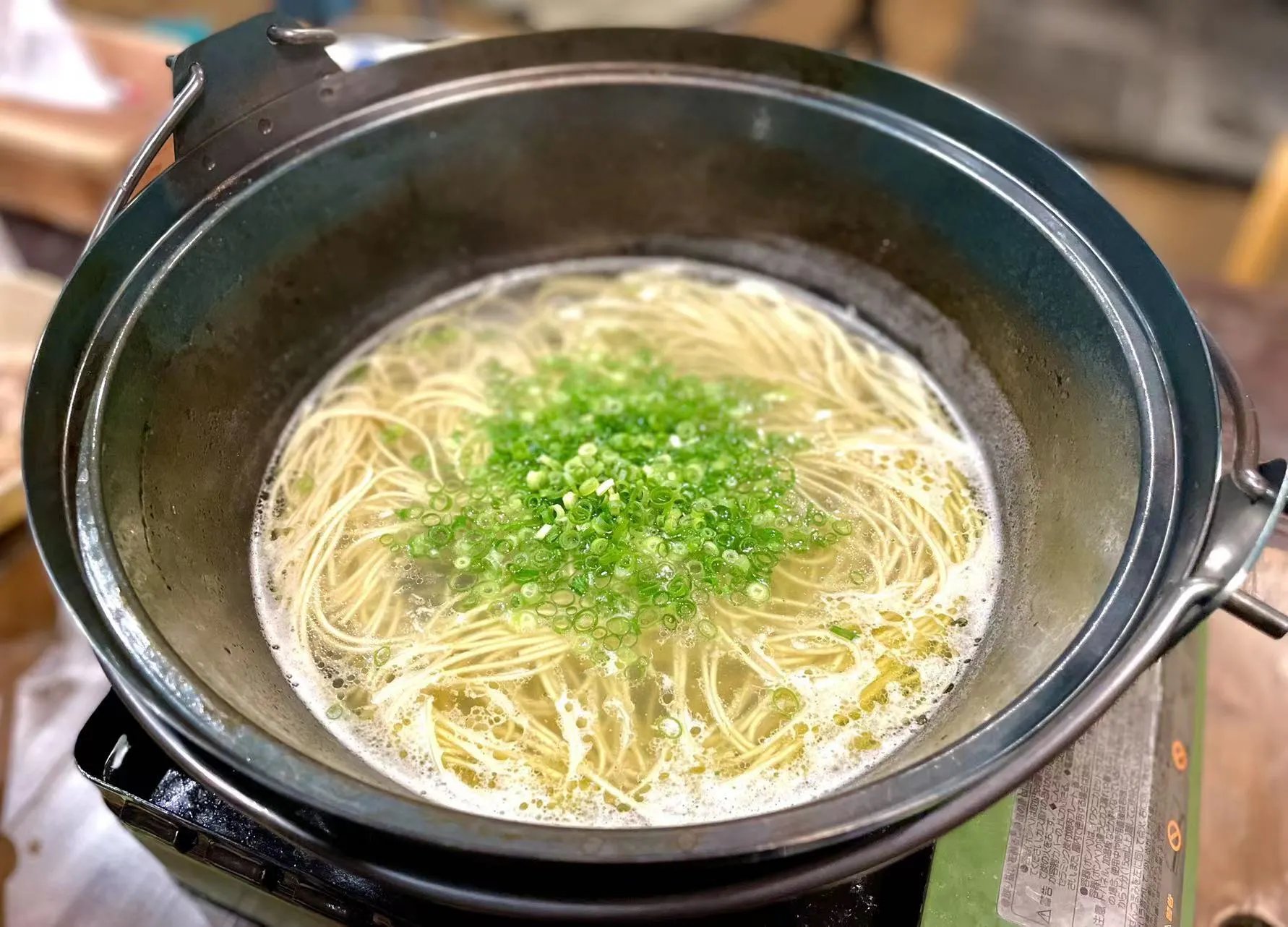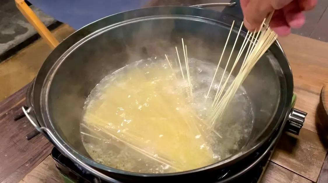 ネギ、生姜、昆布を取り除き、棒ラーメン・・・1~2束、塩・・・小さじ0.5~1杯を入れる。