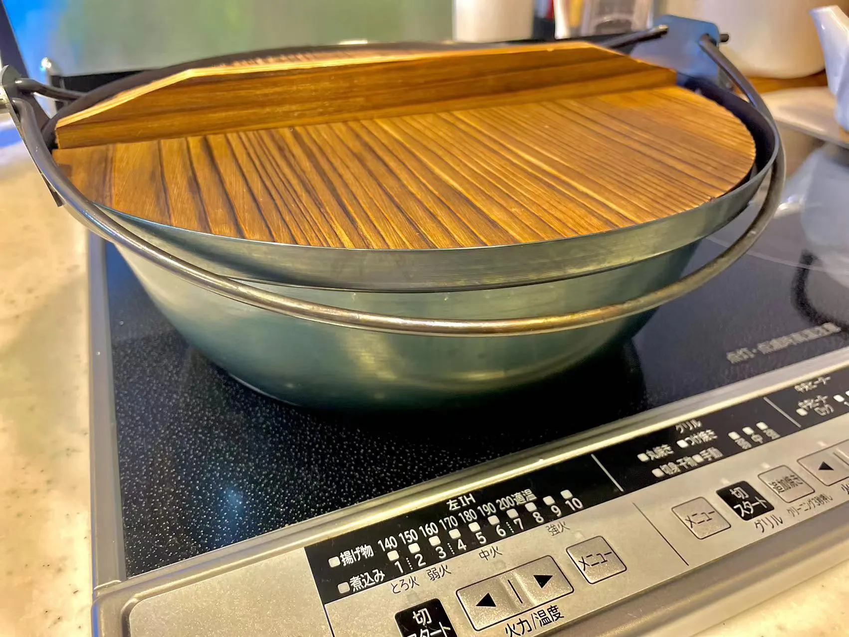 家庭で使う土鍋より軽量で具材を入れてIHで煮立てた後、テーブルに運ぶにも