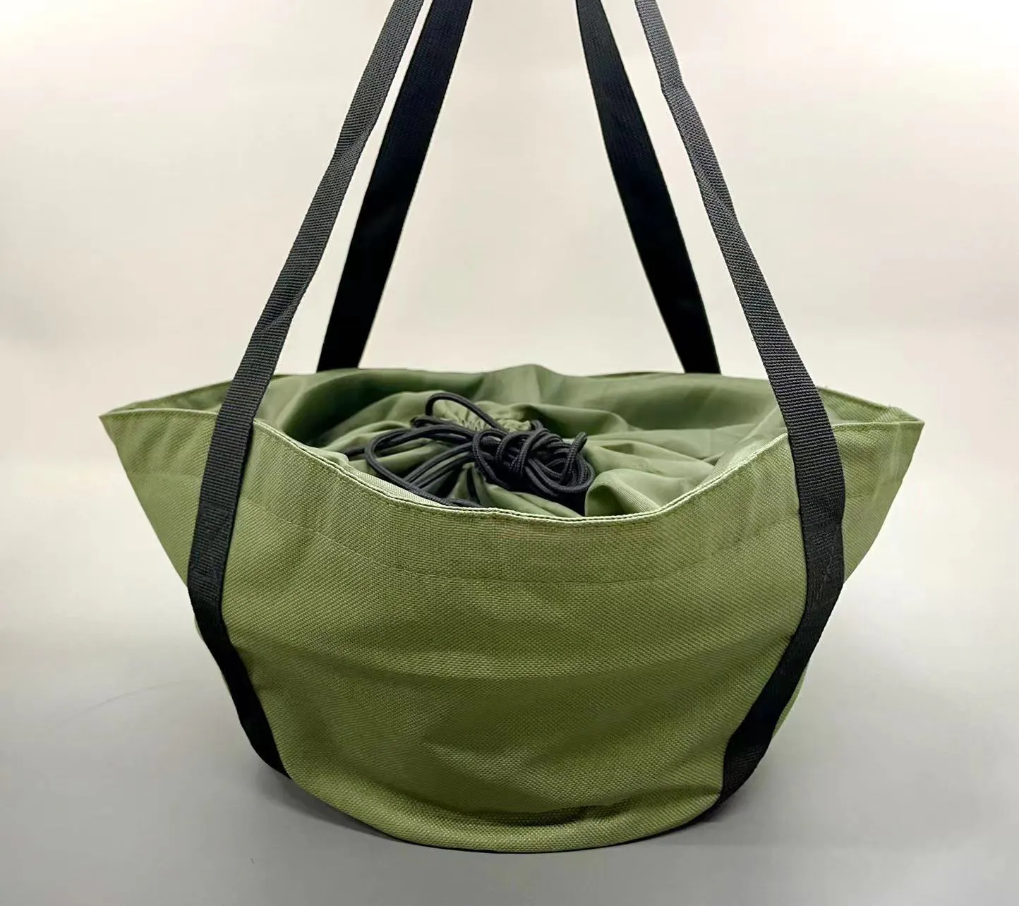 入れた状態。上部巾着部分には、余裕がありますので小物も収納出来ます。