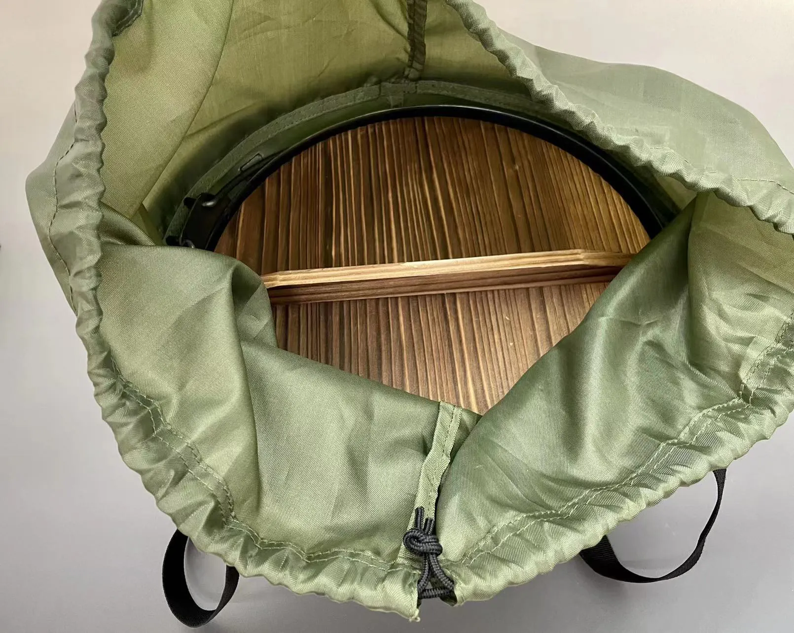 鍋は鉄製で塗装をせず、ハードテンパー加工(表面の焼付け加工)を行う事により、キャンプでの強火使用、焚火の熱に耐える仕様にしました。