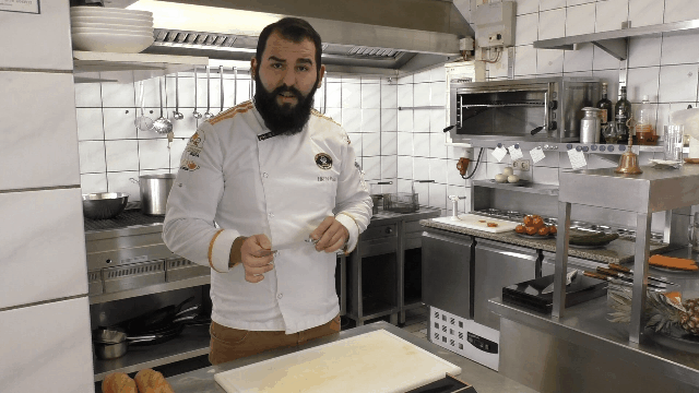 シェフ目線での包丁の切れ味、使い心地をチェックし、実際に「Sternsteiger Achilles アキレス」を使ってホテルレストランのお客様へ料理を提供しています。