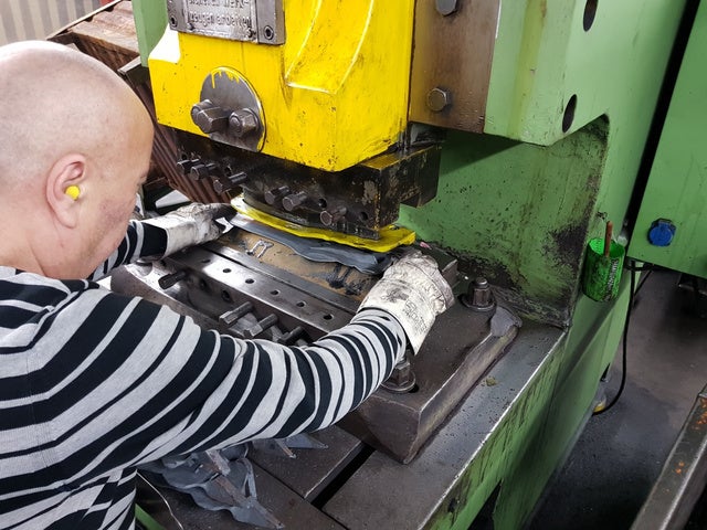 世界三大刃物産地と名高いドイツ・ゾーリンゲンの熟練職人がスティールのひとつの塊から包丁の形を成形し、14トンも圧力のかかるプレス機を使用します。