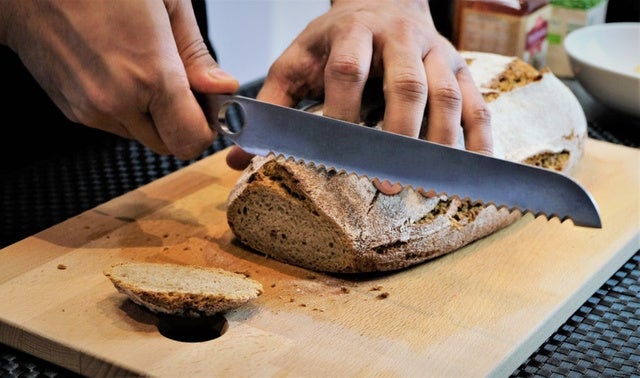 硬くしっかりとしたドイツパンでも力強くカットできます。