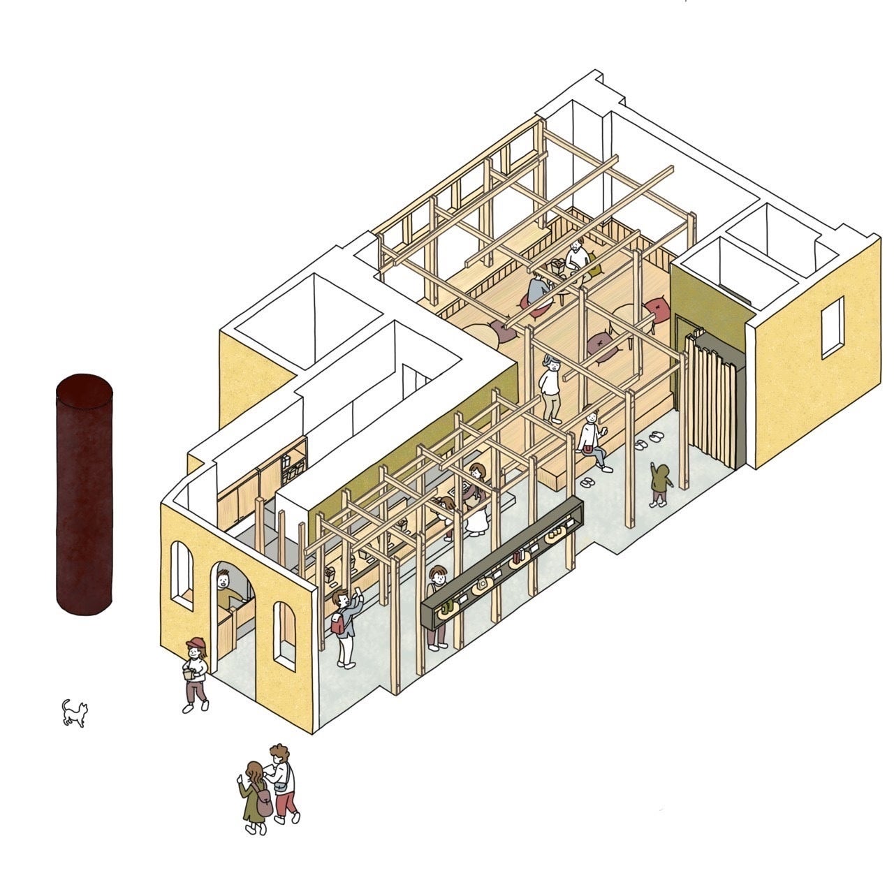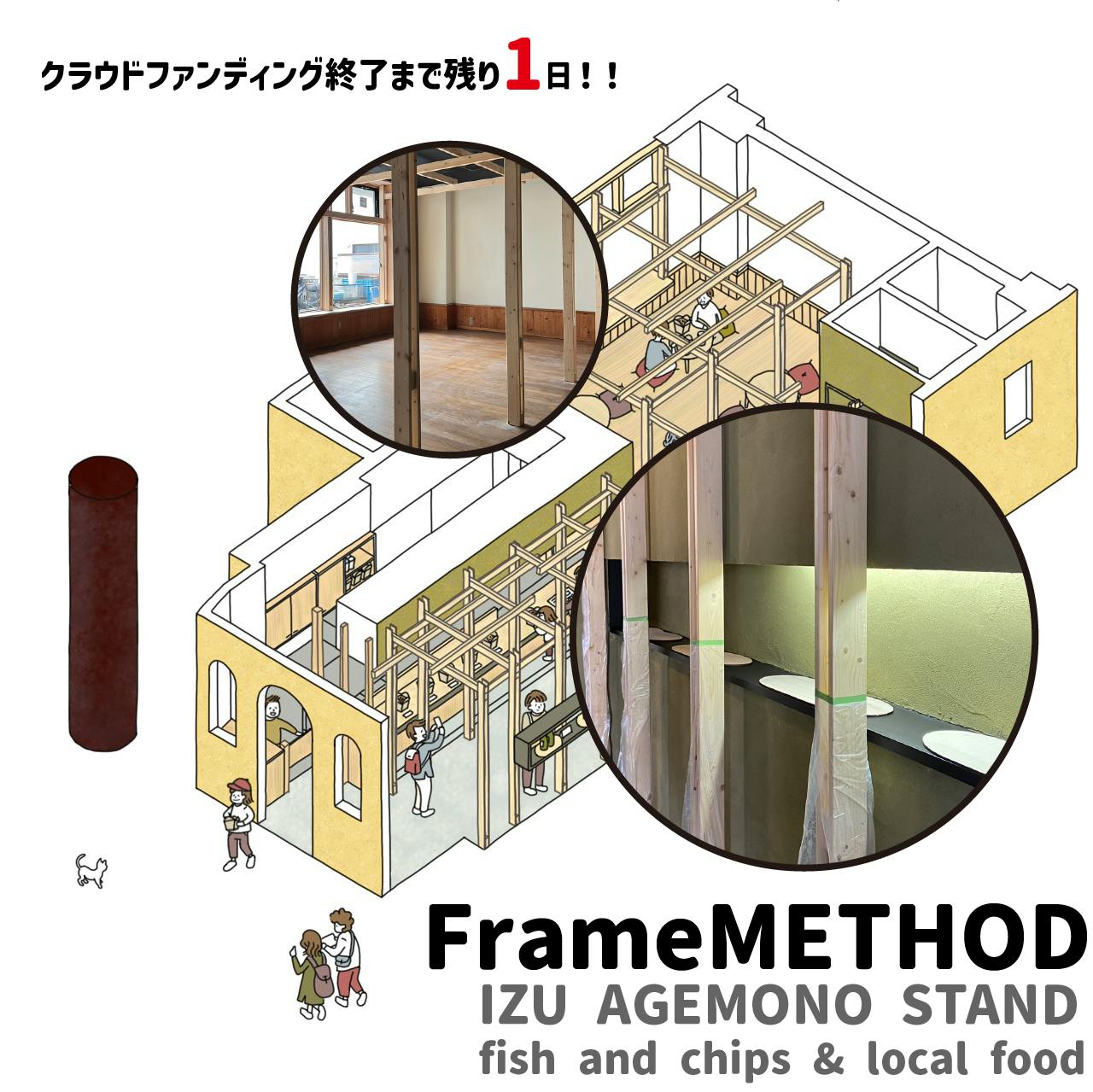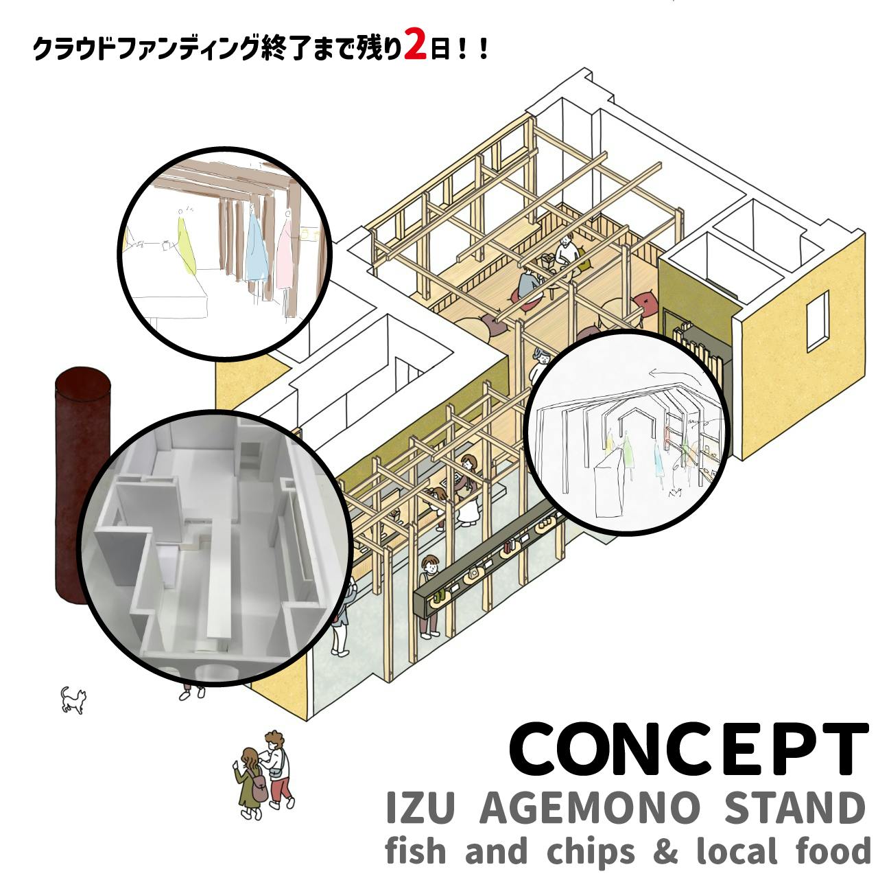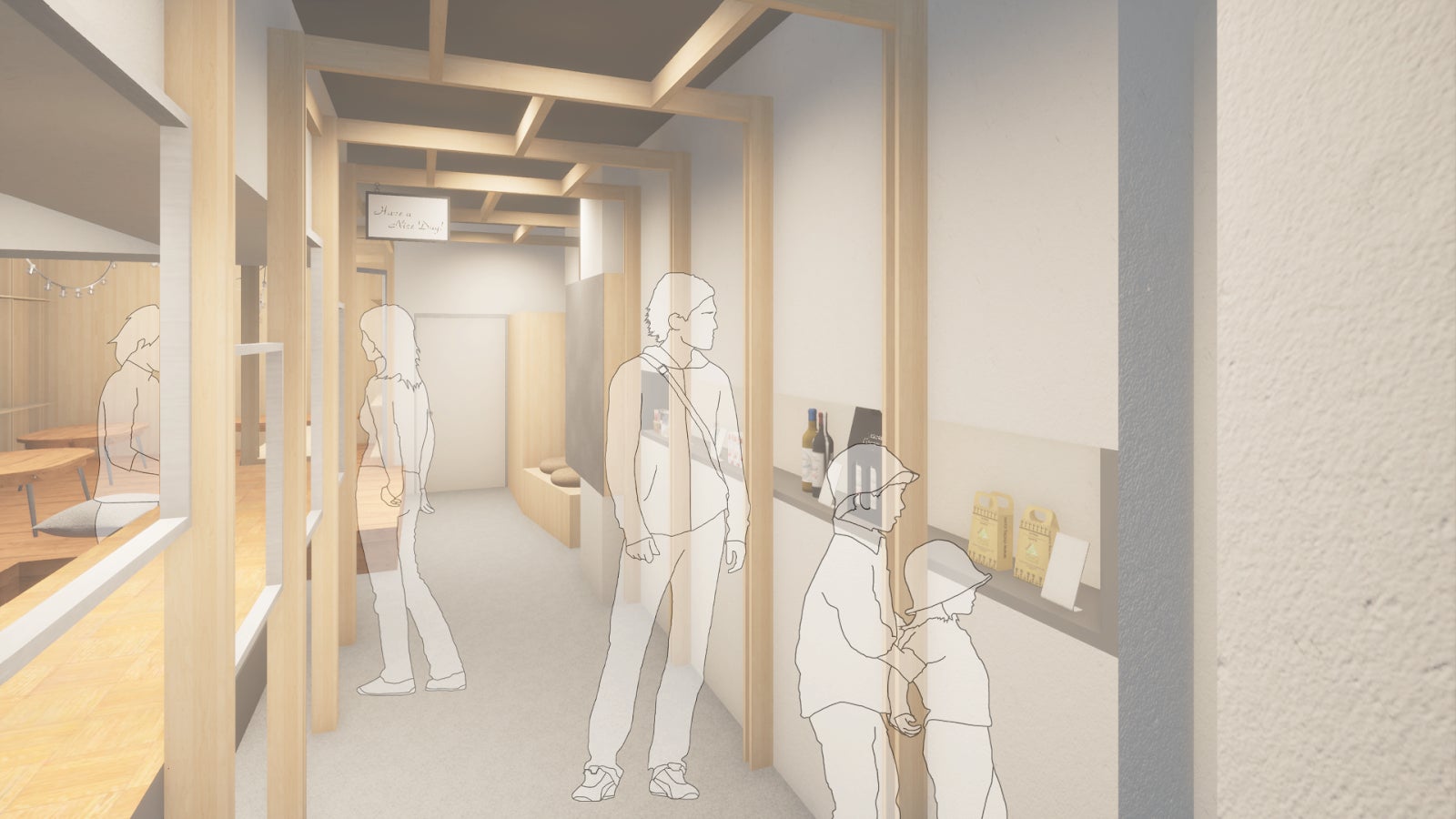 2023/01/29 15:00クラウドファンディング終了まで残り2日!!本日は本文でも少し紹介していますが、どういった経緯で本店舗のイメージができたのか、どういった思いを持って本店舗が設計されているかなど、お店のコンセプトについてご紹介させていただきます。本文に記載している通り、この物件は私たちの今までの静岡県東伊豆での活動を認めてくださっての依頼となっています。本物件は、東伊豆の一つの観光名所である温泉街に位置しており、周囲には温泉旅館が立ち並び、足湯や海が近いとても恵まれた物件でした。物件の改修だけでなく地域の町おこしとしての活動を行っていた私たちにとって、この物件の改修は「まちおこし」を目指すうえで非常に好条件な物件でした。私たちはこの物件の改修を始める際、この物件をどのような場所にするかについて話し合いました。そして一つのテーマとして決められたのが「集まる、出会う、訪れる。ことの循環」でした。この物件を観光の魅力そのものにするのではなく、この街の魅力を知るための拠点のような場所にしようと考えたのです。 「サイクリングショップ」「お土産屋さん」「カフェ」「おにぎりやさん」など、様々な意見が飛び交いました。それらを総括し、飲食店×お土産やさん(セレクトショップ)という形にまとまりました。そして、その目標を達成するために私たちが「建築」という分野の視点から出した解決方法がこのフレームです。あえて視界を狭め、「どんなものがあるんだろう?」と気にならせるような、形を目指しました。フレーム案が出た当初のモックアップ(試作)以上が本店舗の始まりです。実際に店舗にいらした際はこの記事のことを思い出していただき、私たちの思いをぜひ感じ取っていただきたいです。 もっと見る