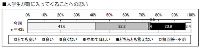 実際に、東伊豆町の方々は大学生がまちに入ってくることに対して7割以上が良いと思ってくれています。