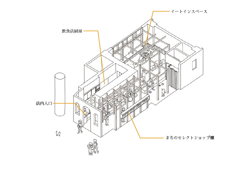 揚げ物が出来上がるまでの時間を、セレクトショップブースを見ることで解消する。あるいはセレクトショップで商品を見ている時間に揚げ物のいいにおいやイートインスペースでの楽しそうな雰囲気につられてしまう。そんな体験をぜひ完成後に堪能していただきたいです。