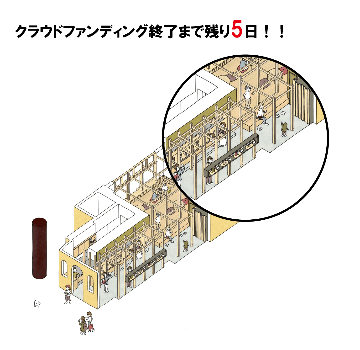 現在の様子棚隠しや、トイレの扉、床面、小上がりなど、ヤスリやワックスがけなどを通して細かく仕上げ、非常に美しい仕上がりになっており、もうすでに見た目は開店前の店舗のような綺麗さをしています。