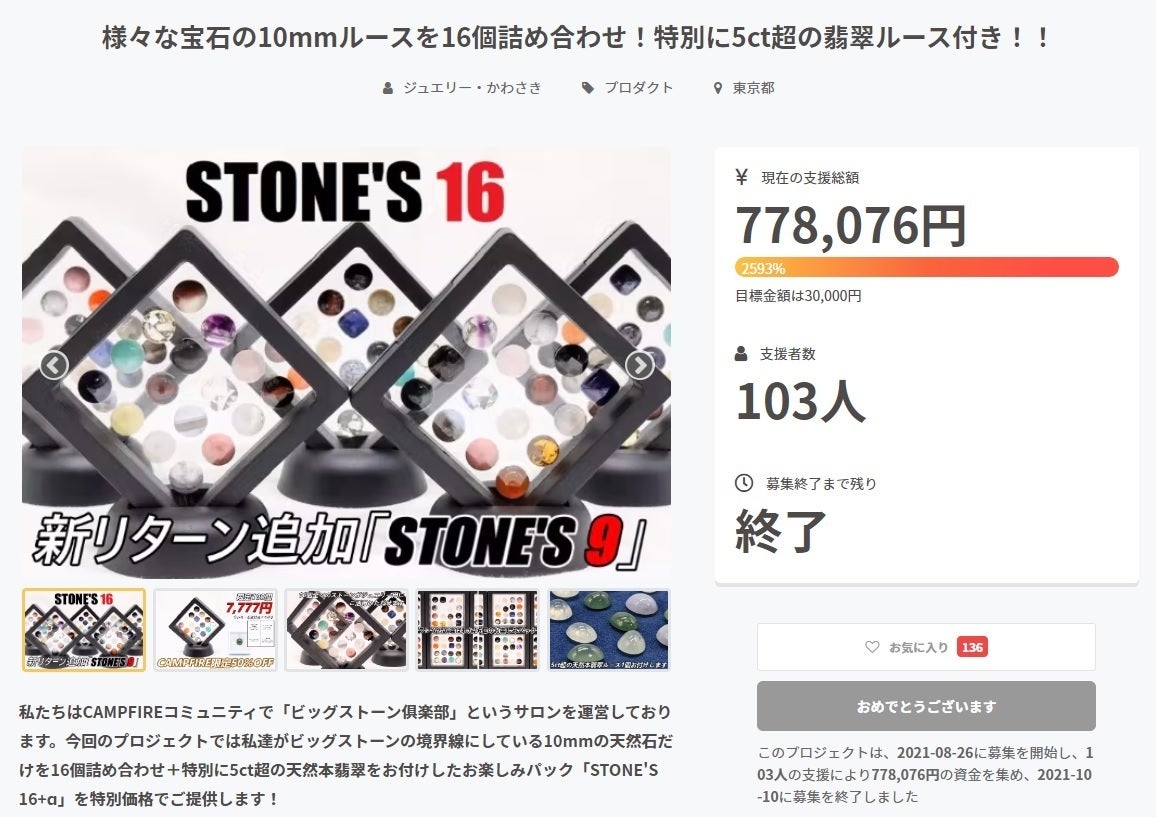 私たちは、CAMPFIREコミュニティで 「ビッグストーン俱楽部」というコミュニティサロンを運営しております。こちらのサロンは10mm以上のカラーストーンがランダムで毎月届くコミュニティです。