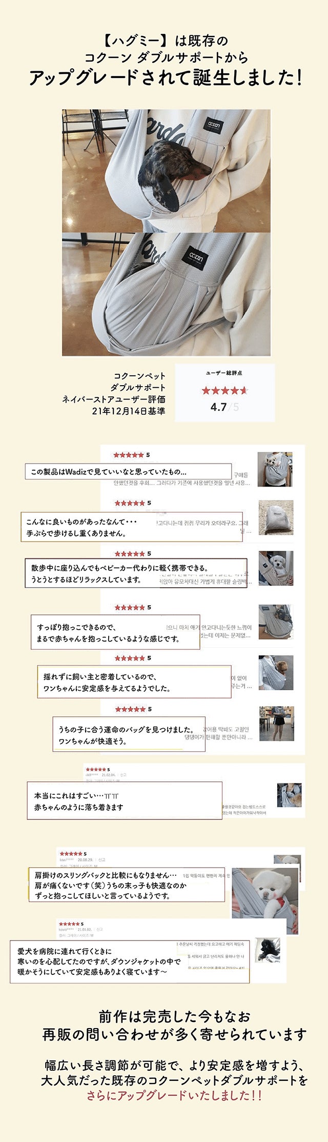 コクーン ダブルサポート【ハグミー】を手に取ったみなさまに喜んでもらえるよう、心を込めて対応していきますので、応援よろしくお願い致します。