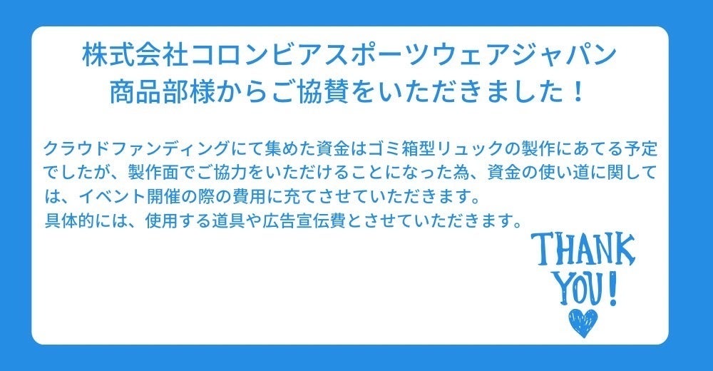 リュック完成後には渋谷でゴミ拾いのイベントを開催致します。