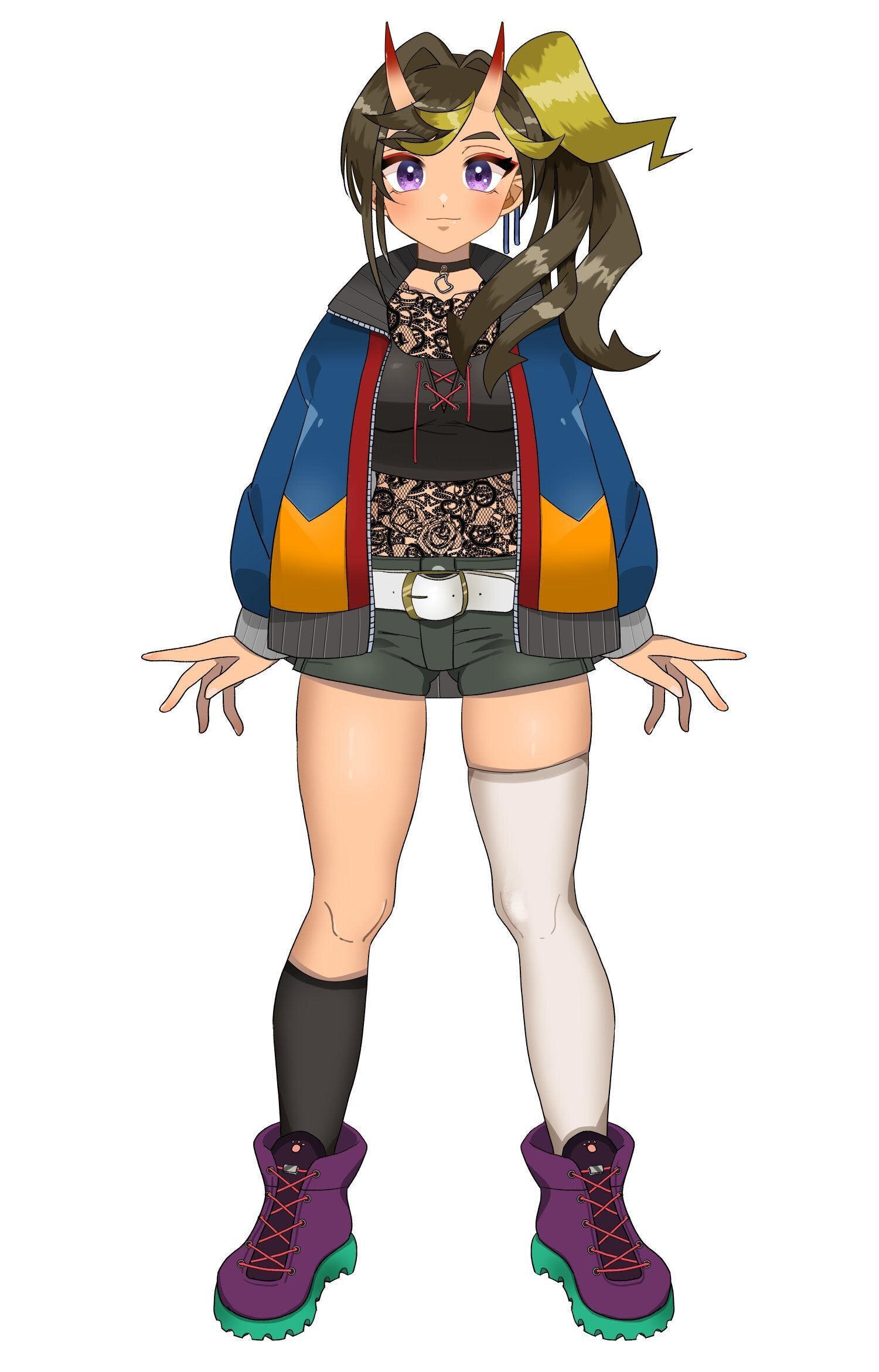 ①立ち絵(デザイン、Live2D用差分、三面図、レイヤー分け)