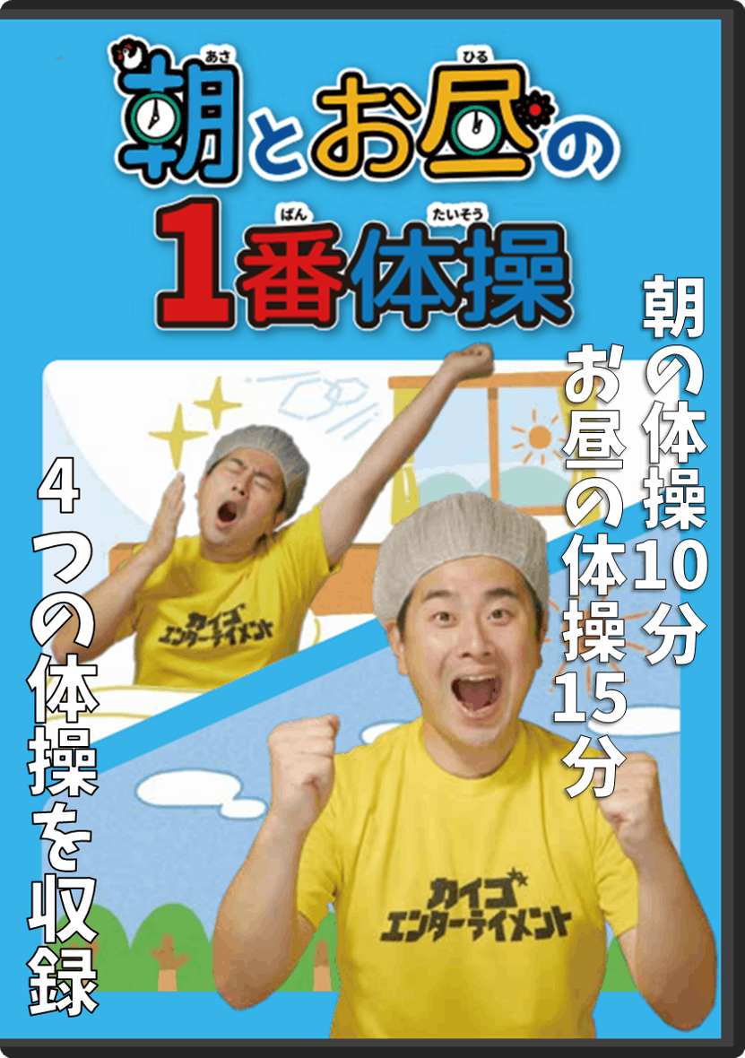 朝の体操10分×2種類・お昼の体操15分×2種類、合計4種類の体操が収録されたDVD!