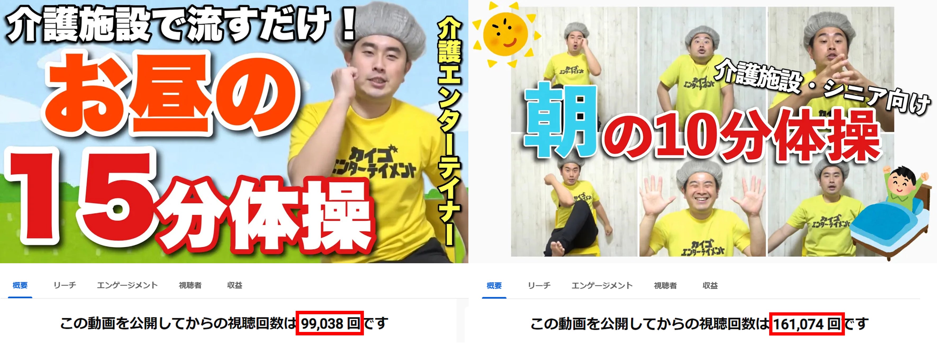 約10万回再生、約15万回再生と再生数も抜群ですし、介護現場で働く皆さんから絶賛の声を頂いています。