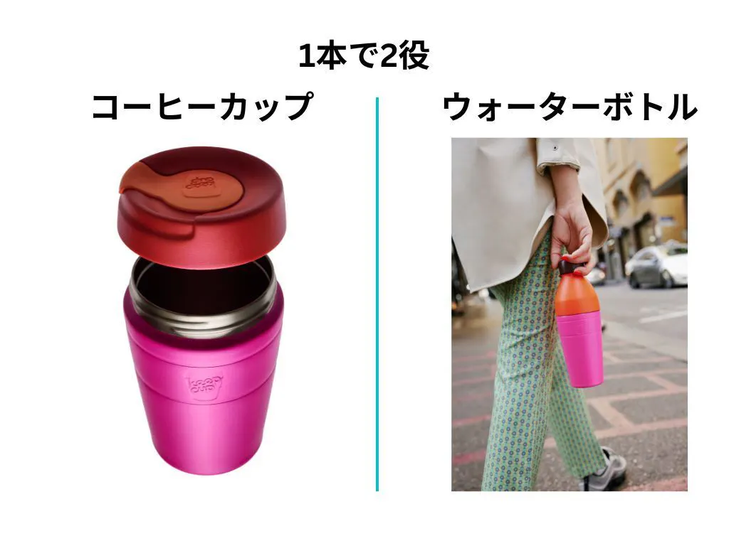 KeepCup初「完全密封」のいつでもどこでも持ち運べるカップ/ボトルとなります。オフィス、レジャー、アウトドア、エクササイズなど働き世代のライフスタイルに幅広く対応可能です。