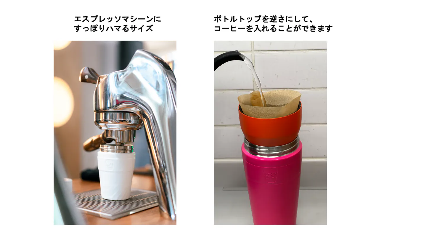 しかしマイカップの普及によってその用途は多様化。長距離の持ち運びや、カバンにいれるなどの用途に対する要望が増え、KeepCupがデザインと機能性に配慮した「完全密封」のカップ⇄ボトルを開発しました。