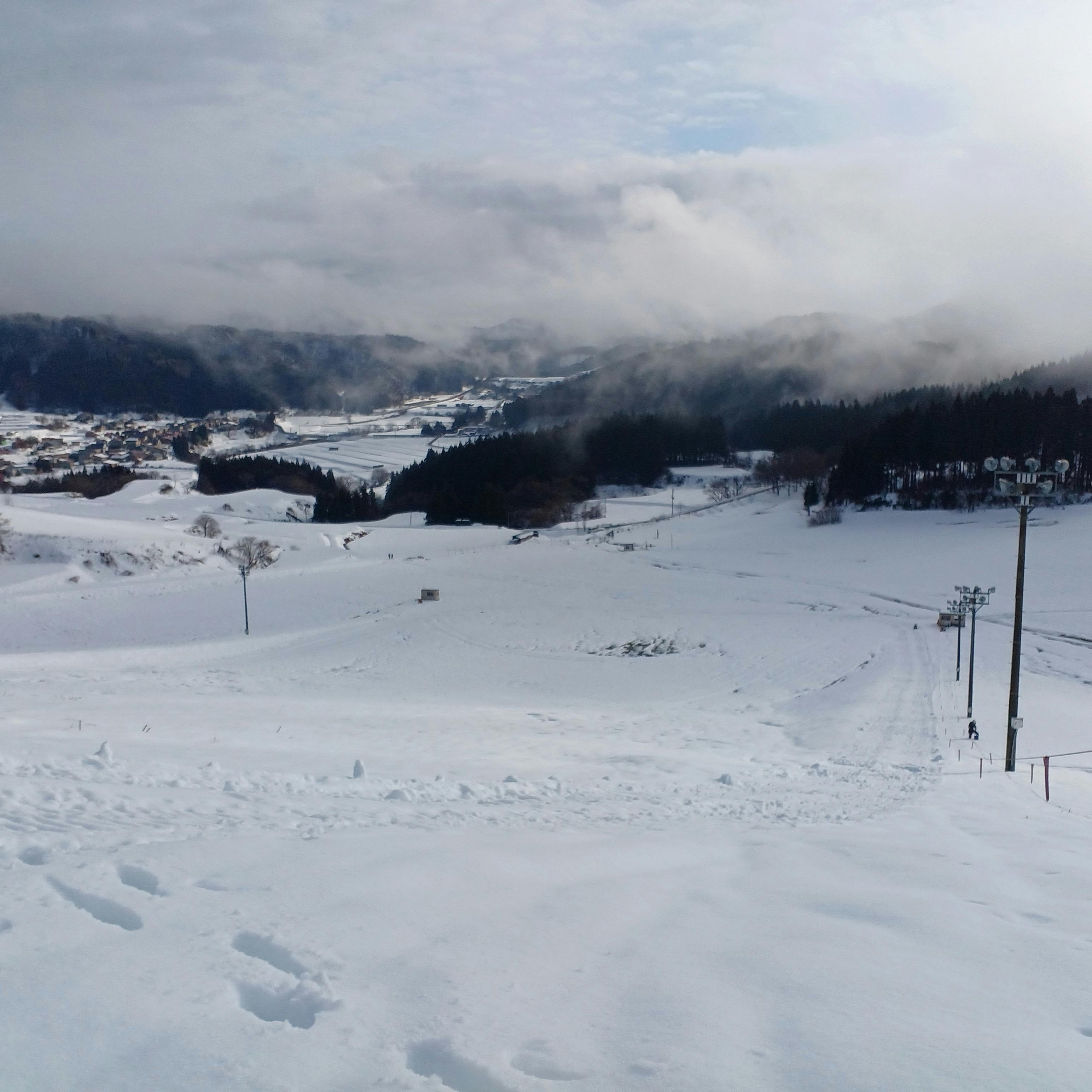 今朝の大平スキー場山頂からの景色です。もう一降りほしいところですが、